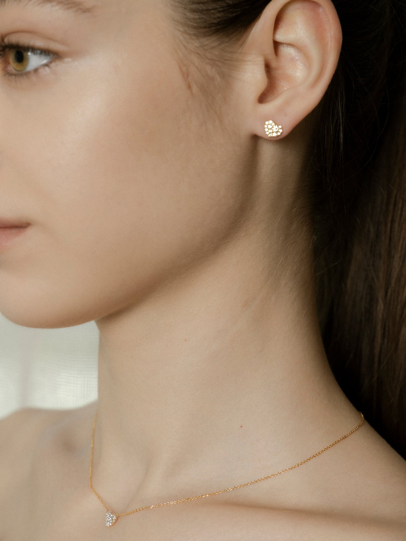 Each earring is adorned with a cluster of dazzling cubic zirconia stones in varying sizes (1mm, 1.3mm, 1.5mm, 1.75mm, and 2.5mm), creating a brilliant, multi-dimensional shine that catches the light from every angle. Despite their luxurious sparkle, they remain lightweight at only 1.40g, making them perfect for all-day wear.