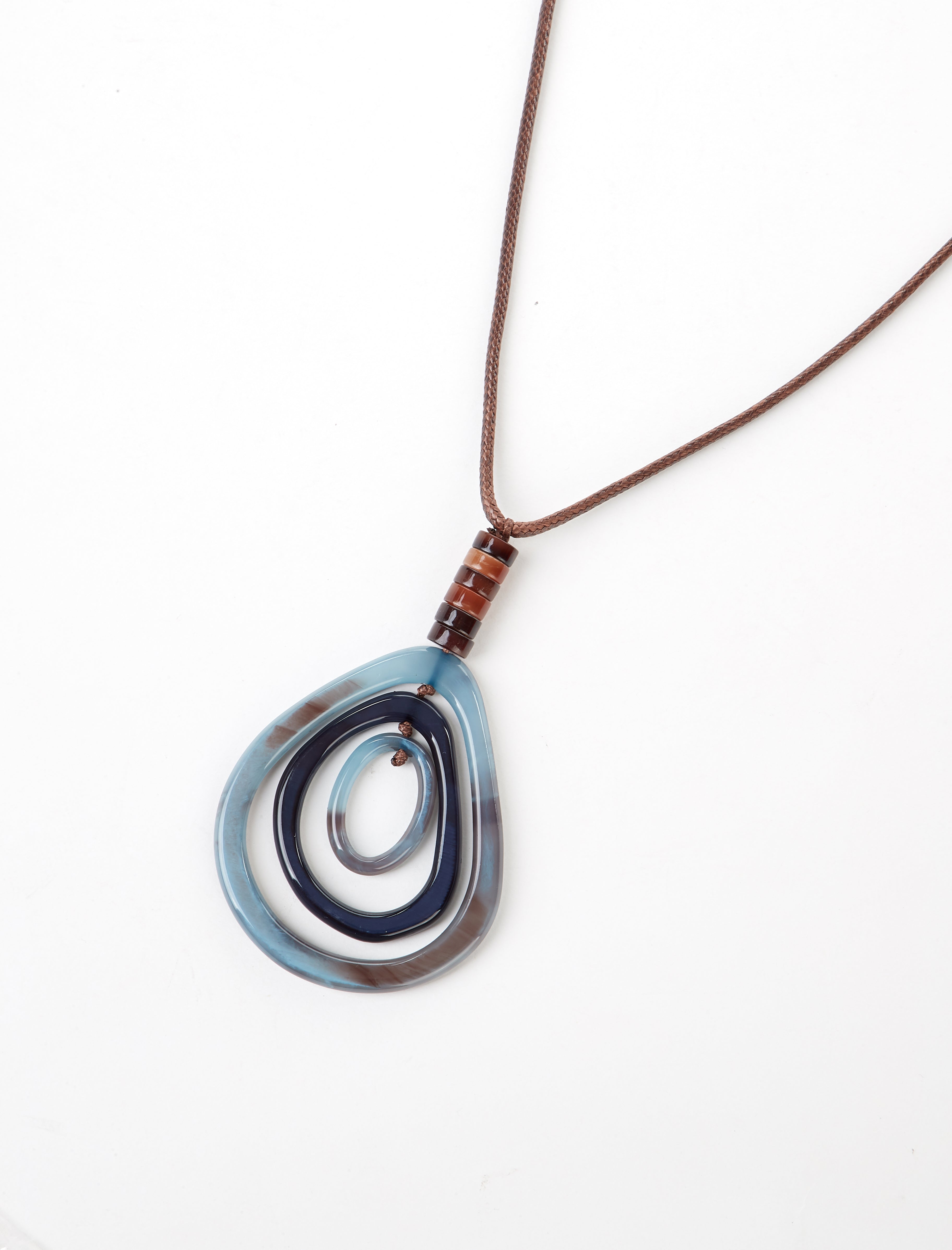 The necklace is adorned with translucent oval beads, strung together with rustic knotted detailing, enhancing its boho-chic appeal. Designed with an adjustable gold-tone chain (49cm + 7.5cm extension), it allows for versatile styling—whether worn as a close choker or a relaxed mid-length necklace.