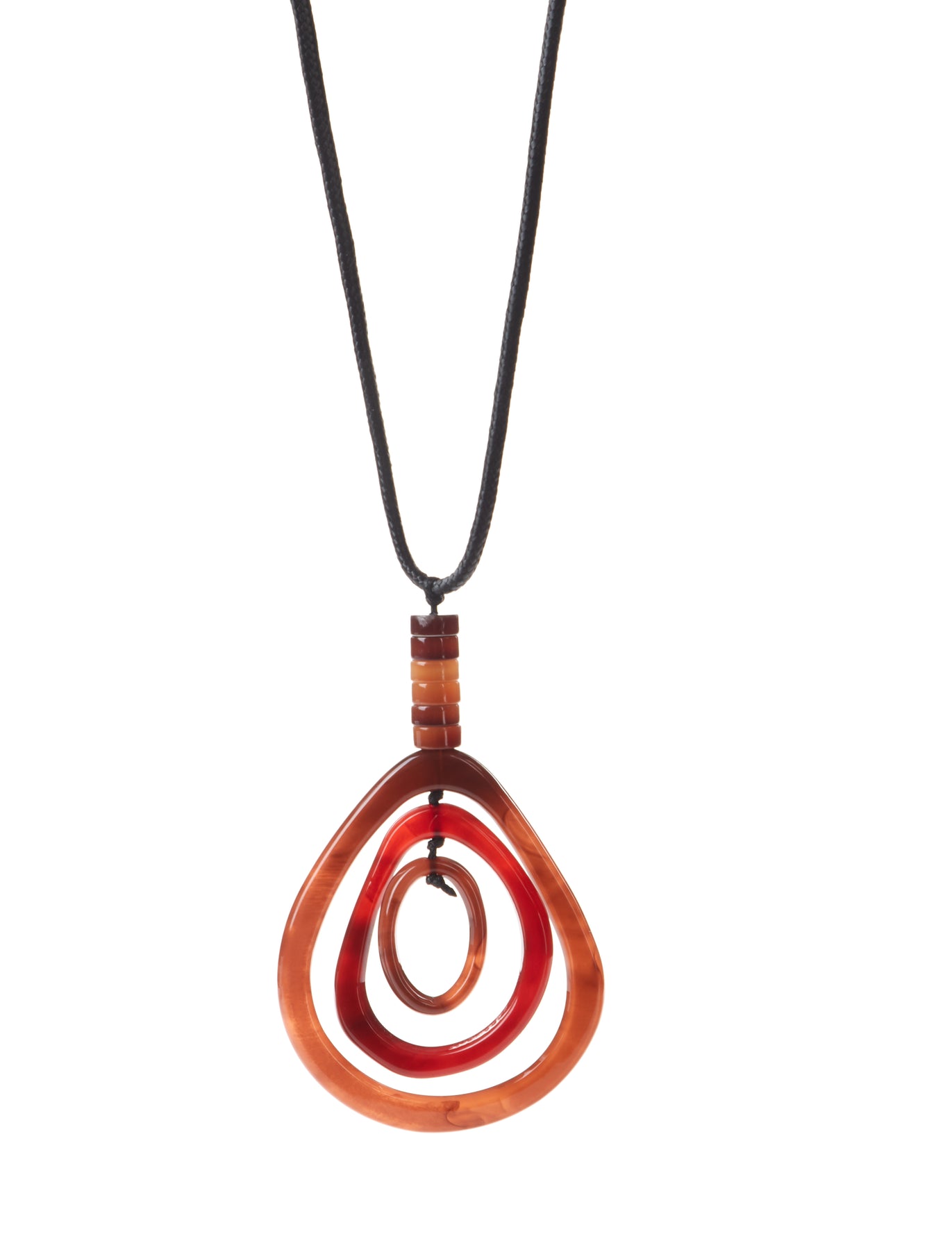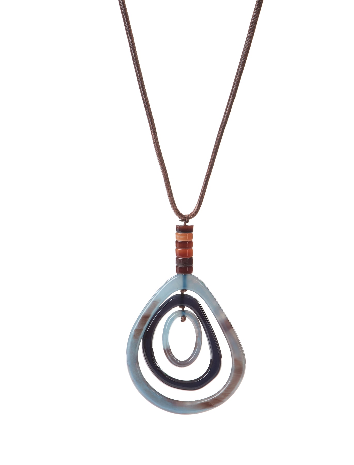 Suspended from a textured brown cord with stacked acrylic bead accents, the design adds an earthy, handcrafted touch. With a long 62cm chain + 5.5cm adjustable extension, this necklace offers versatility in styling, whether worn over casual ensembles or layered with sophisticated outfits.